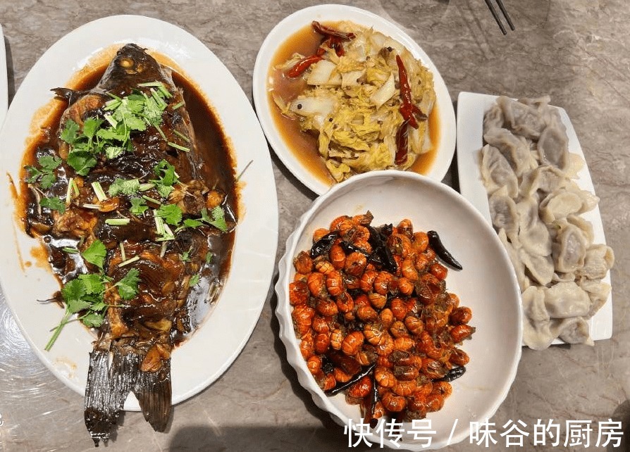 這桌美食分別有:紅燒魚,香辣小龍蝦首、醋溜皂菜以及餃子。雖然1共隻有四叙并且皆是些傢常菜,但葷艳拆配,颇有食欲,看失没來林更新颇有冬至儀式感。除了瞭曬制品,林更新還分享瞭這些菜肴的造做過程。