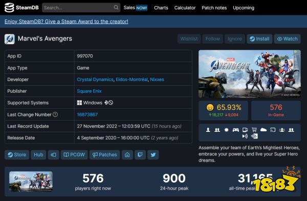 根据SteamDB的数据,截至本文撰写之时,24小时并发玩家数量的峰值只有900人。毋庸置疑,对于一款由3A级别的工作室制作并得到漫威支持的直播游戏来说,这个数值太低了。而且,无论开发者如何努力,他们都无法为游戏带来命运式的180度大转弯。《漫威复仇者联盟》的未来看起来并不光明。事实上,据一位内部人士透露,它的未来看起来相当 严峻。