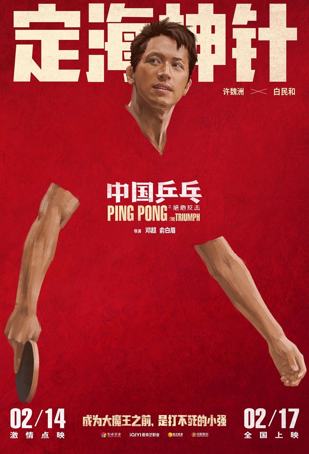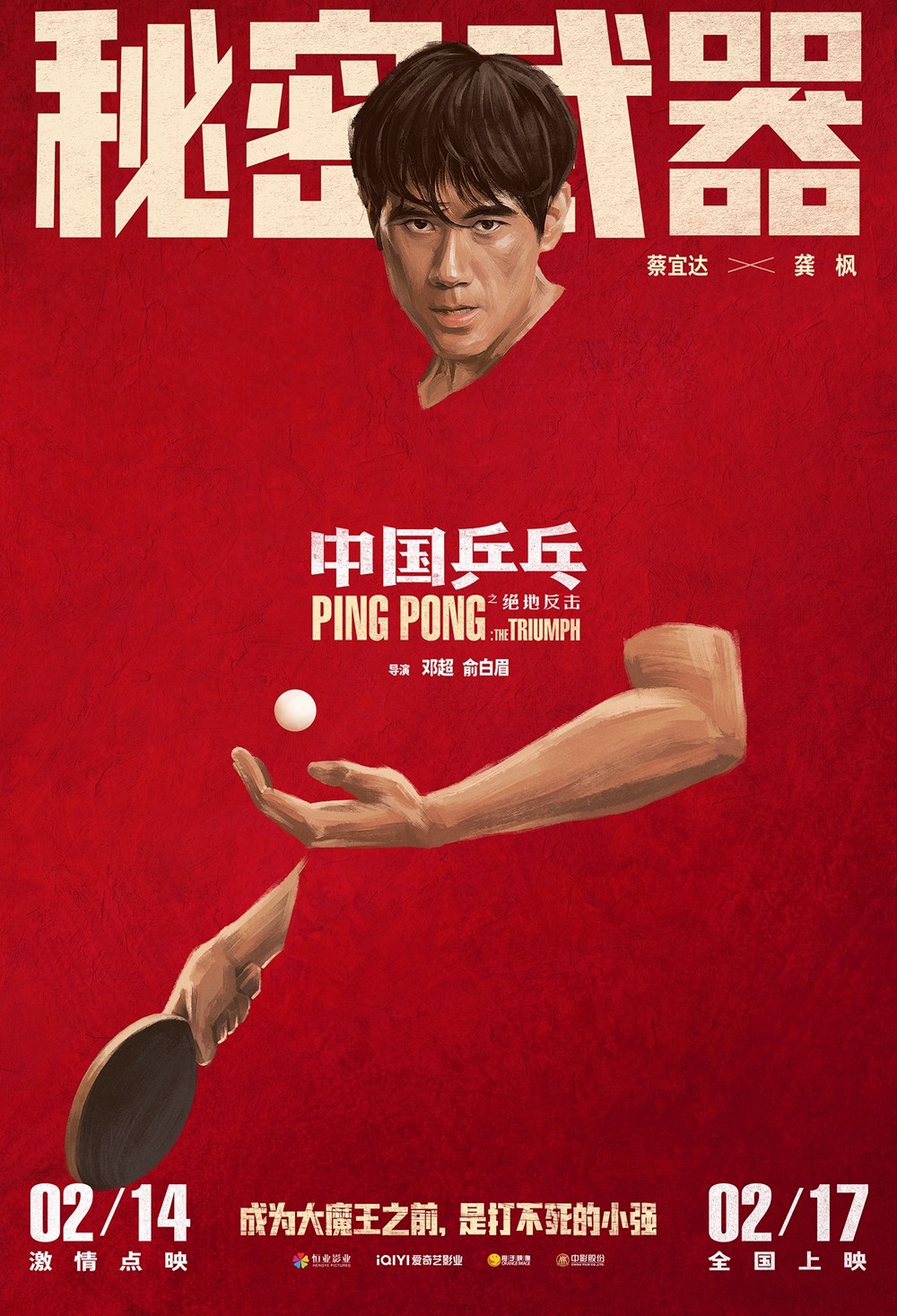 電影《中國乒乓之絕地反擊》由鄧超、俞白眉導演,鄧超、孫儷、許魏洲、段博文、蔡宜達、丁冠森、孫浠倫、阿如那等領銜主演,廈門恒業影業有限公司、愛奇藝影業(北京)有限公司、天津橙子映像傳媒有限公司、中國電影股份有限公司等出品。影片將於2月14日激情點映,2月17日正式上映。