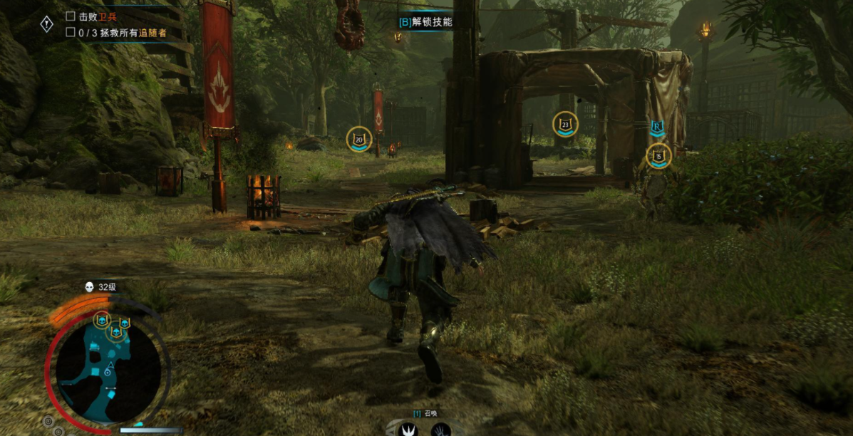 目标一:击败营地里的卫兵并拯救3名追随者