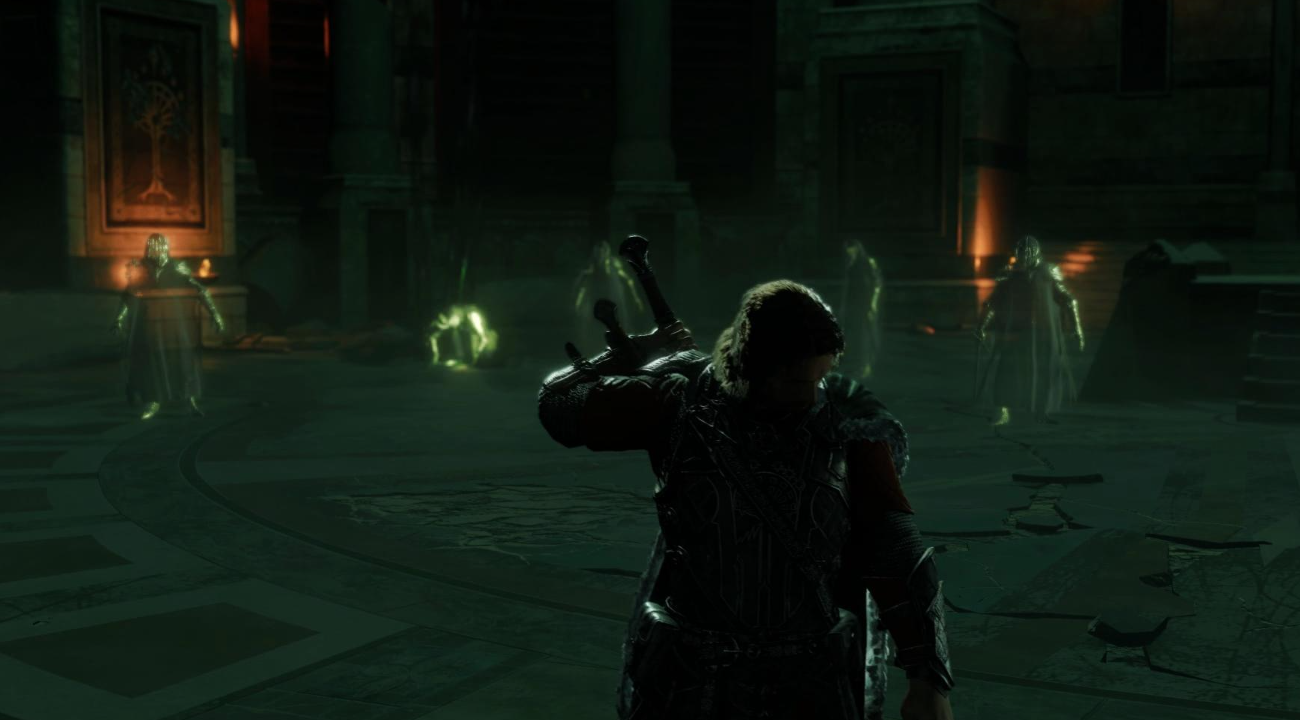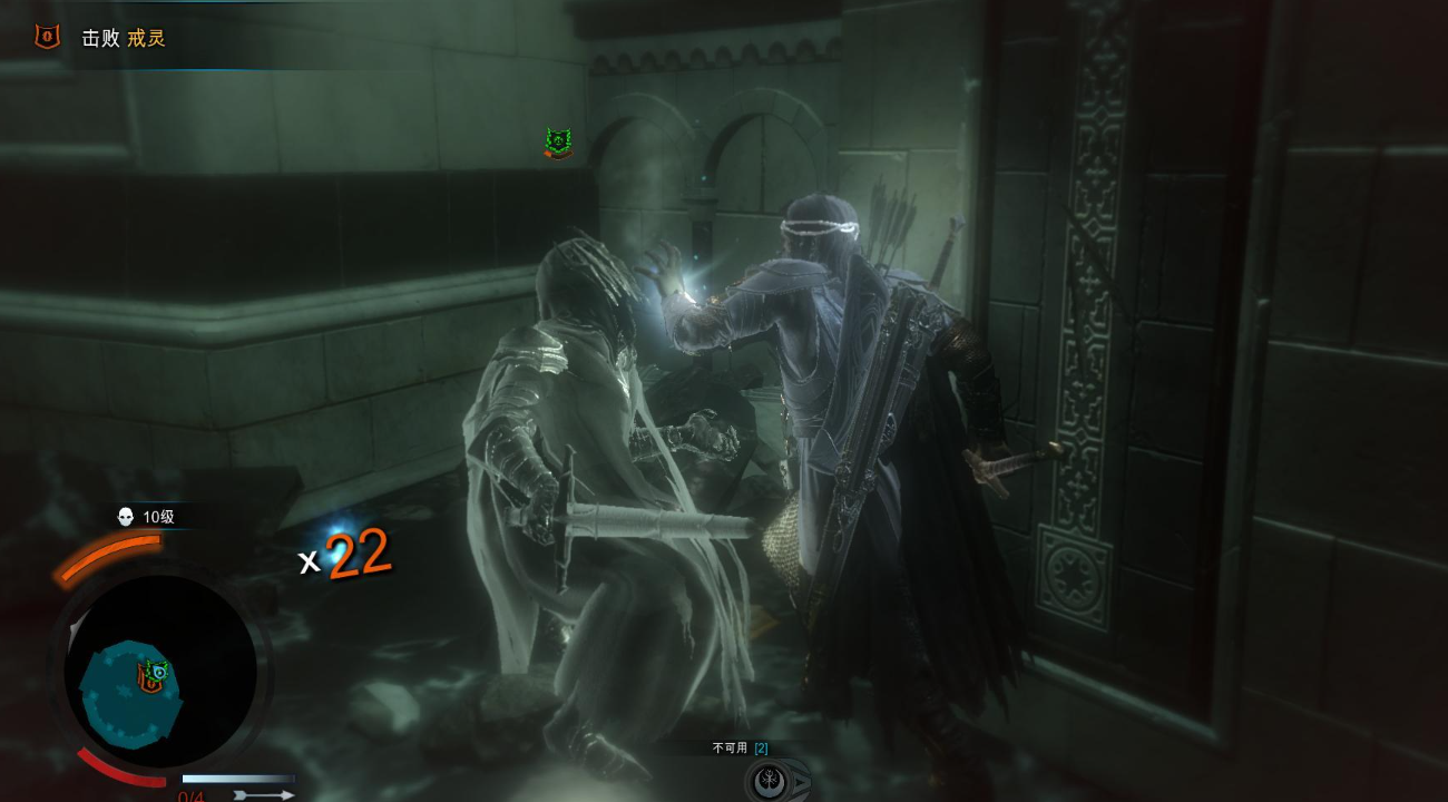 戒灵的打法很简单 虽然戒灵人数众多,但它们的攻击欲望并不强。首先瞄准一个戒灵直接进攻到死即可。需要提防的是无法格挡的横扫攻击需要空格进行闪避,以及戒灵们偶尔会连续发动攻势,需要连续按下反击按键。当将一个戒灵攻击到低生命值时,他会进入瘫痪状态,长按E将其击垮。