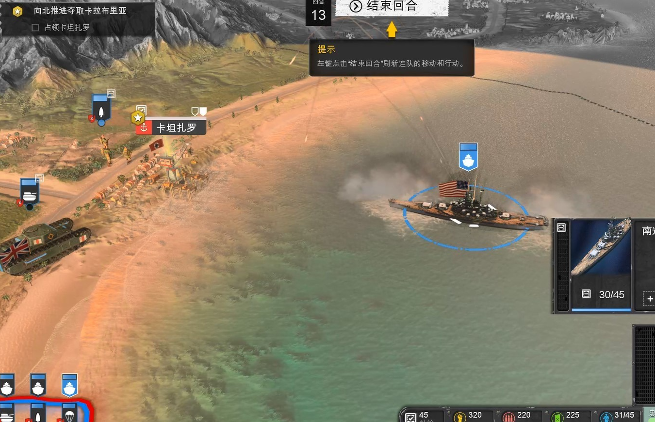 用战列舰轰炸并占领卡坦扎罗,注意别炸到自己人。
