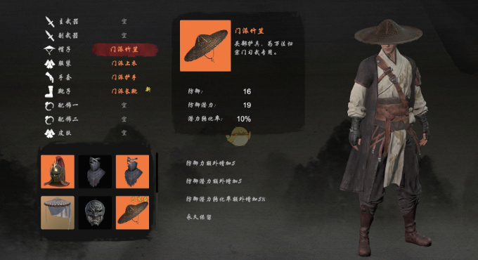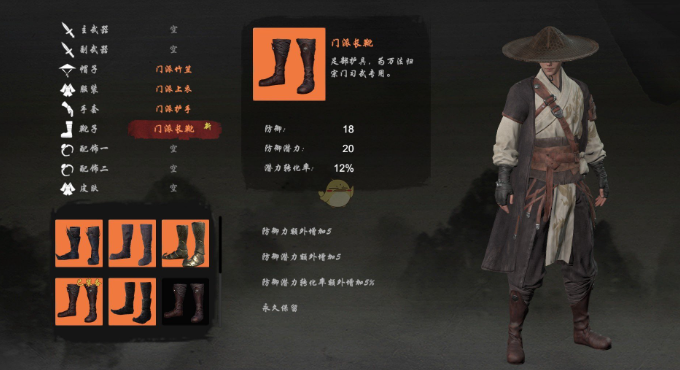 门派套装额外属性属性(每件):防御力+5、防御潜力+5、防御潜力转化率+5%
