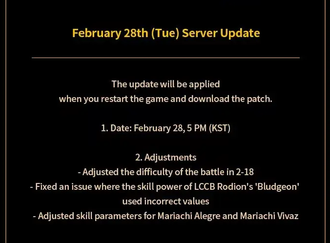 2月28日(火)服务器更新日志说明