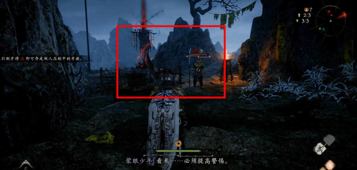 在该区域右侧消灭两名敌人后,可以竖立旌旗(3/3)。