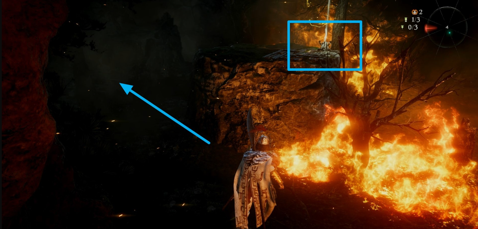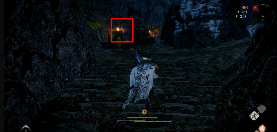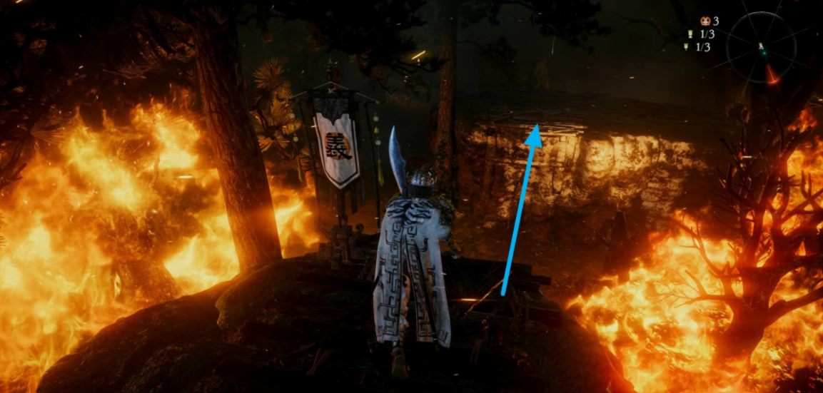随后竖立旌旗(2/3)提升不屈等级,在旌旗旁边的台子上可以获得1个真气破片。