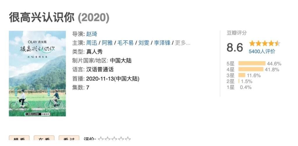 之后,阿雅再度参与了治愈系节目《很高兴认识你》,这档节目第一季同样在豆瓣拿到了8.6的高分,说实话,在豆瓣,这样的高分类内地节目是不多的,而且很难得。