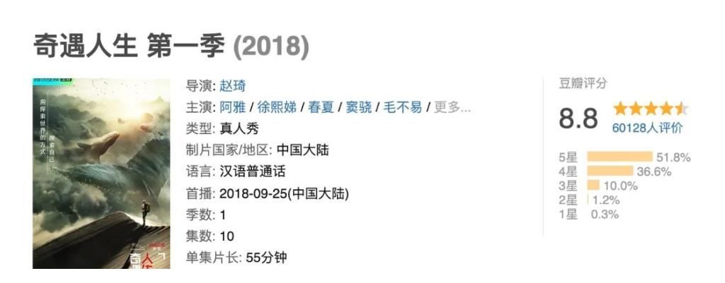 相反,作为大S及小S的好姐妹好闺蜜,主持人阿雅的节目却做得“风生水起”,口碑极高,由阿雅担任出品人发起人的真人秀节目《奇遇人生》在豆瓣的评分高达8.8分,这让阿雅在内地打出了自己的节目风格及标签。
